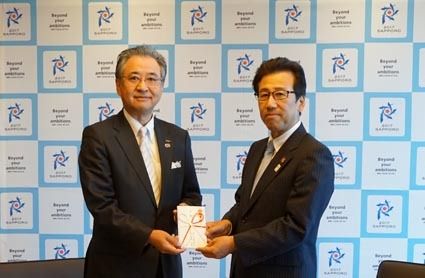札幌トヨタ(中島好美社長)は21日、創立70周年記念事業の一環として「第8回札幌アジア冬季競技大会」組織委員会(会長=秋元克広札幌市長)に100万円を寄付した。同社の中島社長と興村耕二専務が札幌市役所を訪問し、秋元会長に目録を手渡した。秋...