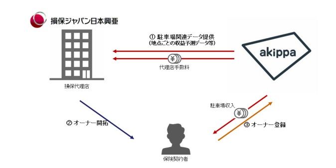 akippaの会員数は約150万人で、駐車場の拠点数は全国約3万拠点で、Webプラットフォームサービスのノウハウを持つ。約5万店の保険代理店網と約1300万件の自動車保険データを保有するSOMPOと組むことで、リアルとデジタルを融合し、akippaのシェアリング型駐車場と会員数の拡大を図る。