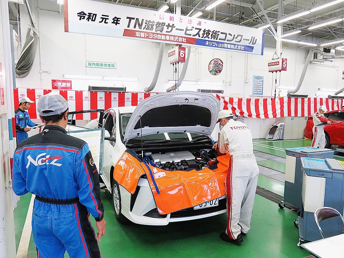 【大津】大阪トヨペットグループ(OTG)の滋賀トヨタ(藤敦秀二社長)とネッツトヨタ滋賀(横山昭一郎社長)は5月28日、滋賀トヨタ大津店(大津市)で「令和元年TN滋賀サービス技術コンクール」を開催した=写真。両社から各5チーム・20人が出場...