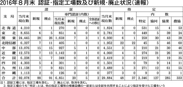国土交通省は2016年8月末時点の認証・指定工場数および新規・廃止状況をまとめた。認証工場数は前月比5工場減の9万2078工場で、3カ月ぶりに減少した。指定工場数は13工場増えて、2万9884工場と3カ月連続増。専門認証工場数も13工場増...