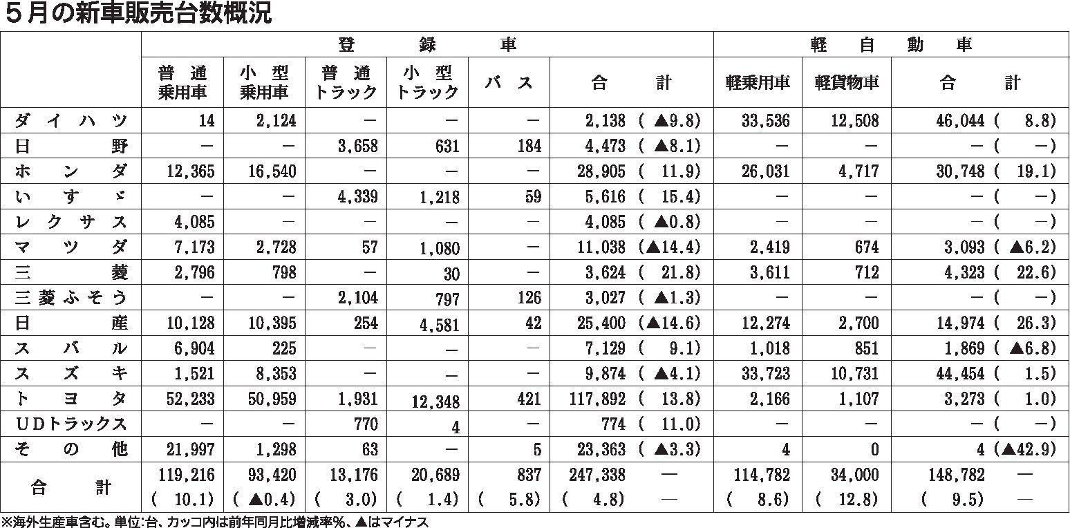 5月の新車販売台数概況