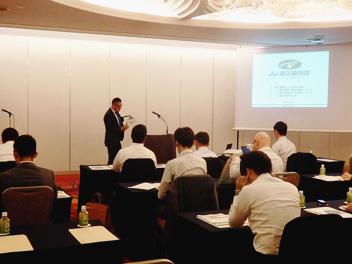 【神戸】兵庫県中古自動車販売商工組合(JU兵庫、森本義則理事長)は神戸市内のホテルで「テントリ・適正販売店認定制度説明会」を開催した=写真。組合員ら約30人の出席者に「販路が拡大したJUテントリ」に関する取り組み方や対応方法などを分かりや...