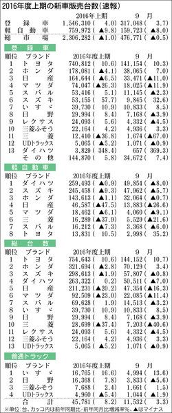 【2016年度上期の新車販売台数(速報)】