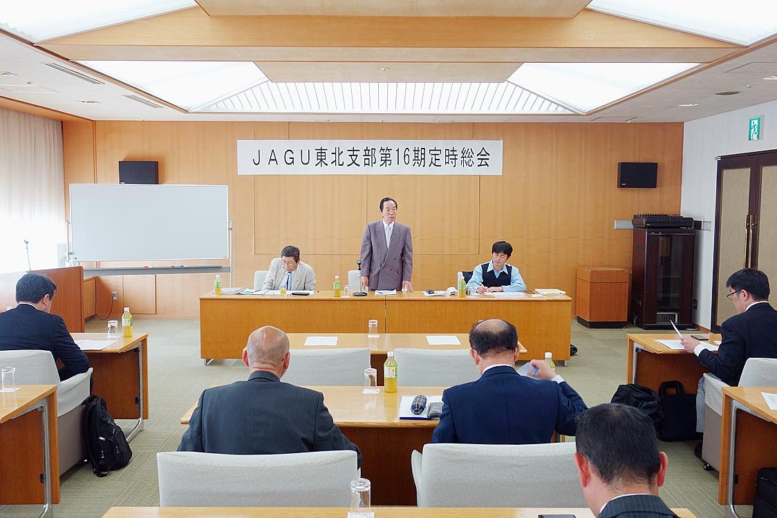 【仙台】日本自動車ガラス販売施工事業協同組合(JAGU)東北支部(佐藤光男支部長)は5月26日、仙台市太白区で「第16期定時総会」を開催した=写真。2018年度の事業報告と19年度事業計画について審議の上、原案通り満場一致で可決された。 ...