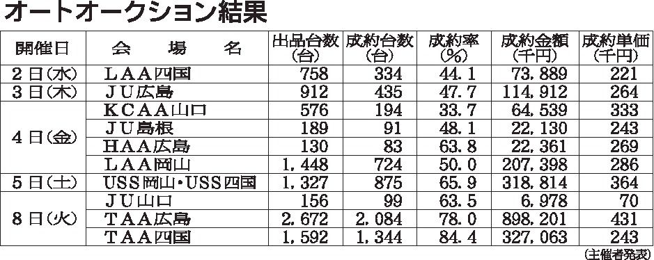 〈オートオークション結果〉中・四国地区 2025/11/5~11