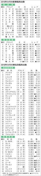 【2016年9月の新車/車名別販売台数】
