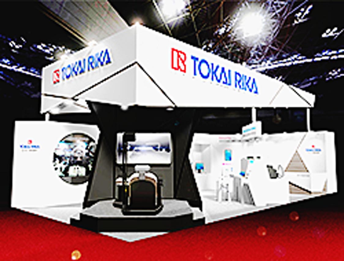 東海理化は、「第46回東京モーターショー2019」に新たなインターフェースを搭載したコックピットやアームレスト一体型タッチパッド、トヨタ自動車「eパレット」に採用された統合電子ミラーシステムなどを出展する=ブースイメージ。また、キー代わり...