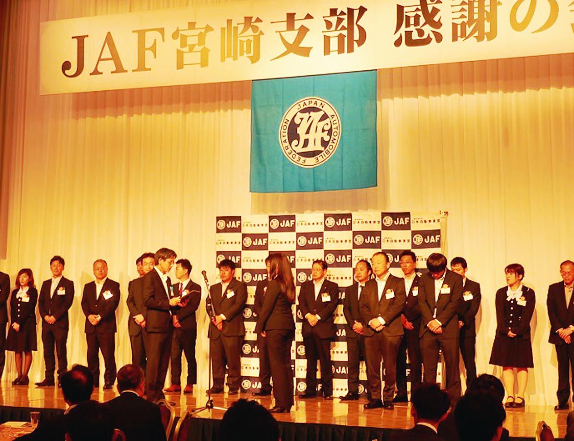 [[感謝の会で貢献スタッフを表彰JAF宮崎]] 【宮崎】日本自動車連盟(JAF)宮崎支部(百野正剛支部長)は、宮崎市内のホテルで「2018年度 感謝の会」を開催した=写真。18年度に会員拡大へ貢献した新車ディーラー、スタッフなどを表彰した。...