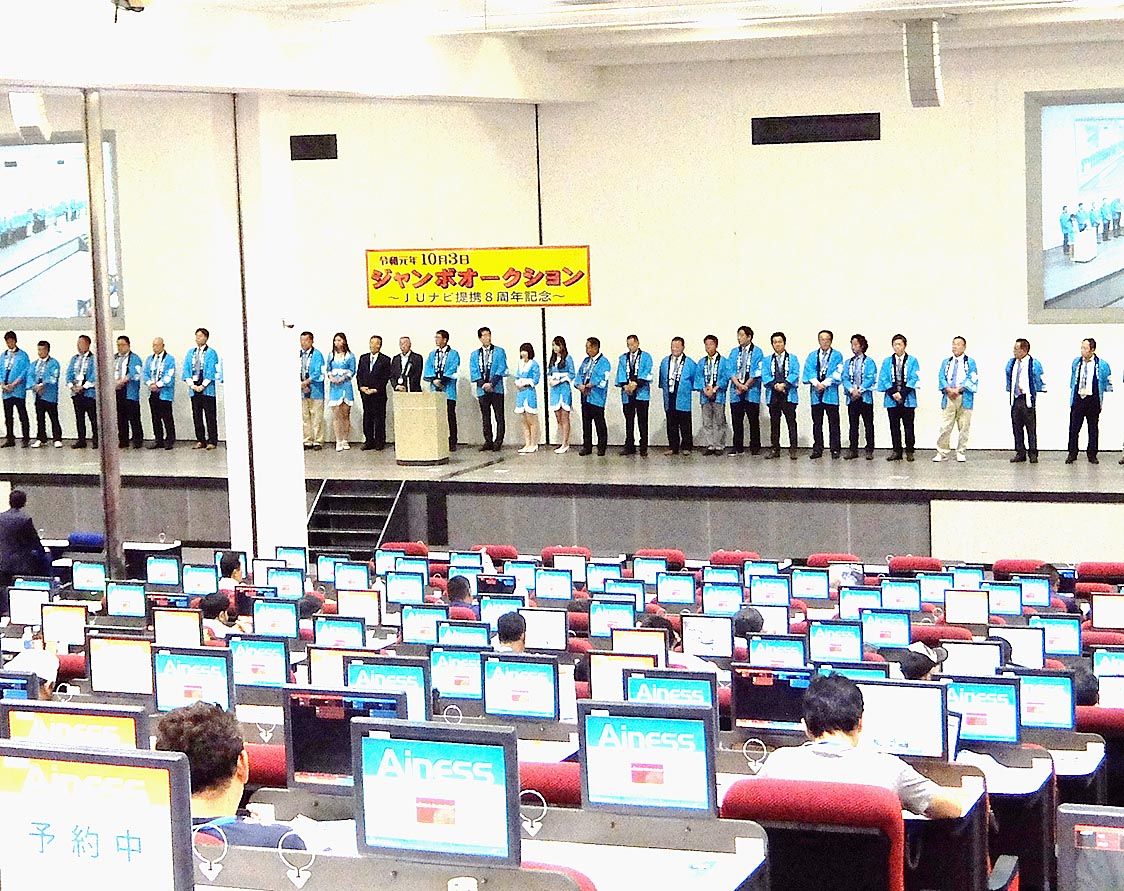 愛知県中古自動車販売商工組合(JU愛知、兼松幸生理事長)は3日、中古車オークション(AA)「ジャンボオークション~JUナビ提携8周年記念~」を開催した=写真。出品台数は4175台で、前年同時期のジャンボオークションの出品台数を17%上回っ...