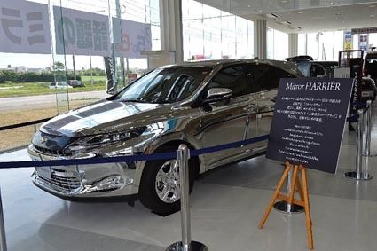【函館】函館トヨペット(河村隆平社長)はこのほど、全面鏡面仕上げの「ミラーハリアー」を本社ショールームに展示、来店客や通行者の注目を集めた。 昨年11月にフルモデルチェンジしたハリアーのPR活動の一環。ガラス張りのショールームにギラリと輝...