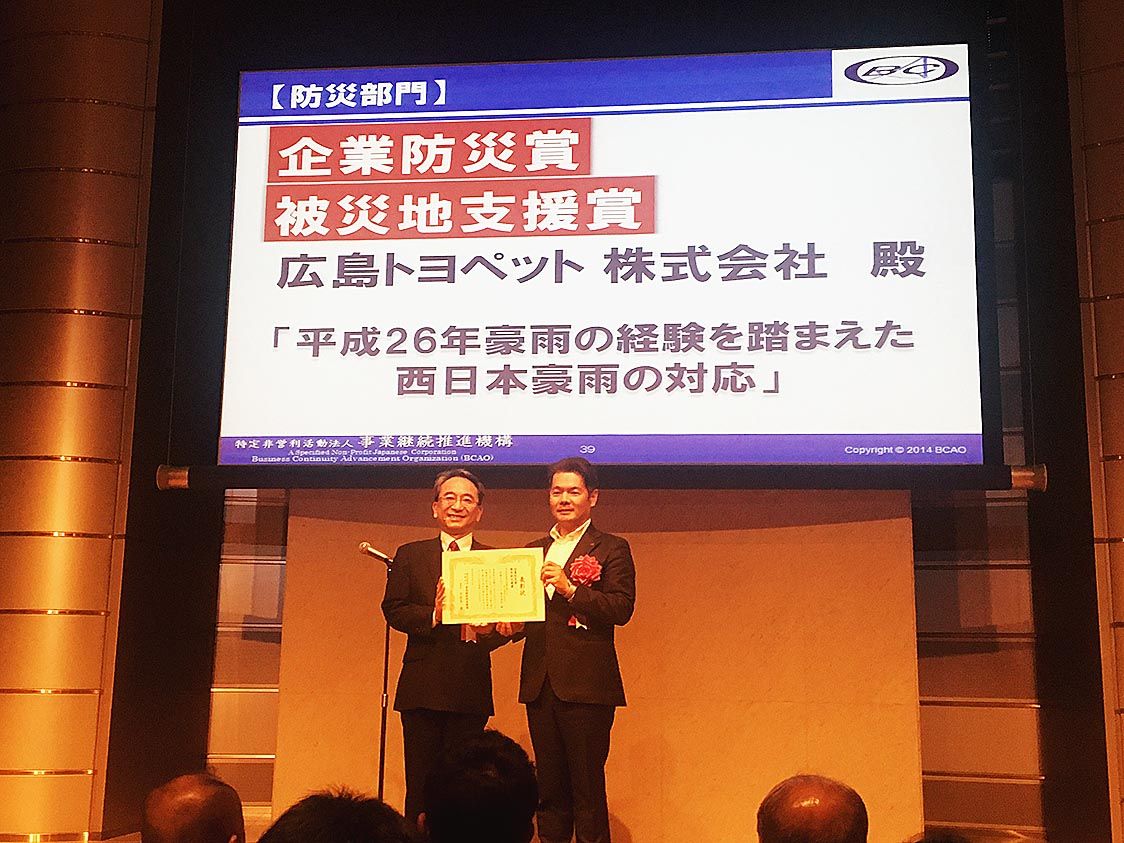 広島トヨペット、事業継続活動に高い評価 BCAOアワード防災部門で表彰
