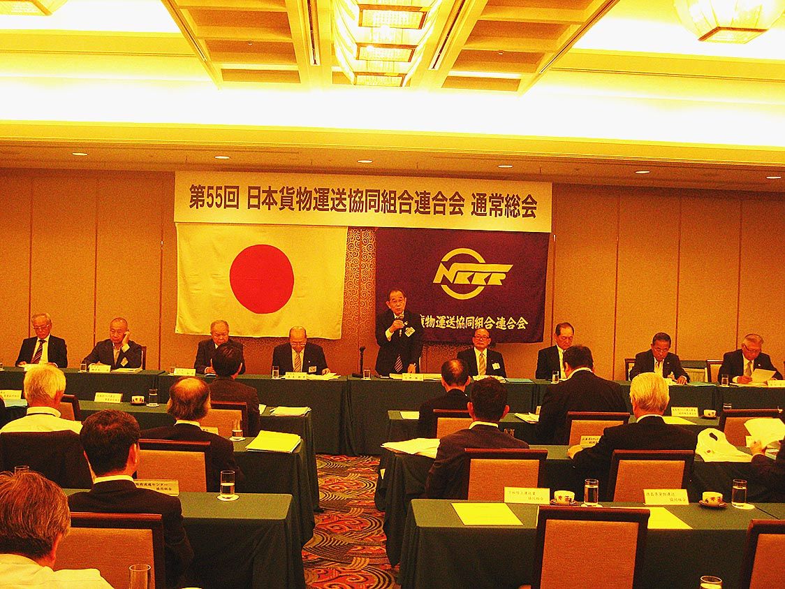 日本貨物運送協同組合連合会(日貨協連、吉野雅山会長)は5日、広島市内のホテルで第55回通常総会と第15回トラック運送事業協同組合全国大会を開催した=写真。通常総会には委任状を含めて会員55人が出席し、昨年度の事業報告や今年度の事業計画など...