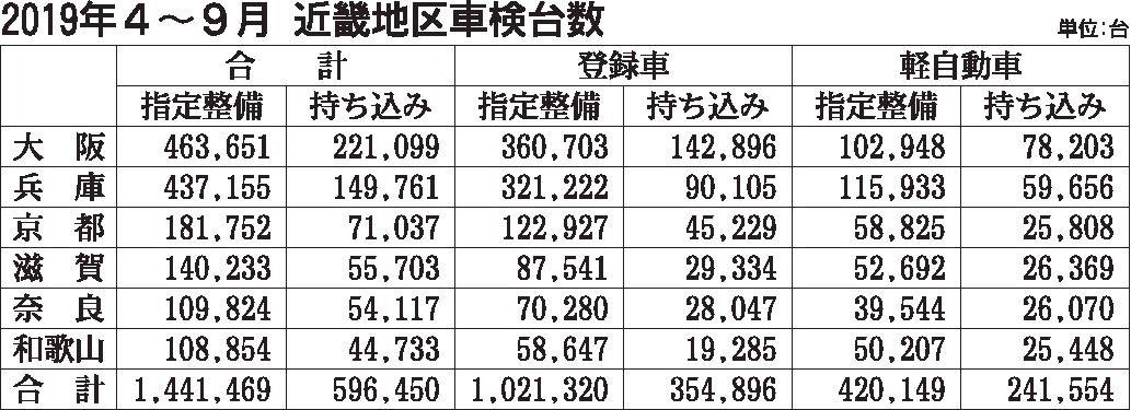 近畿地区の4~9月車検台数3.8%増、2年ぶりプラス、登録車堅調