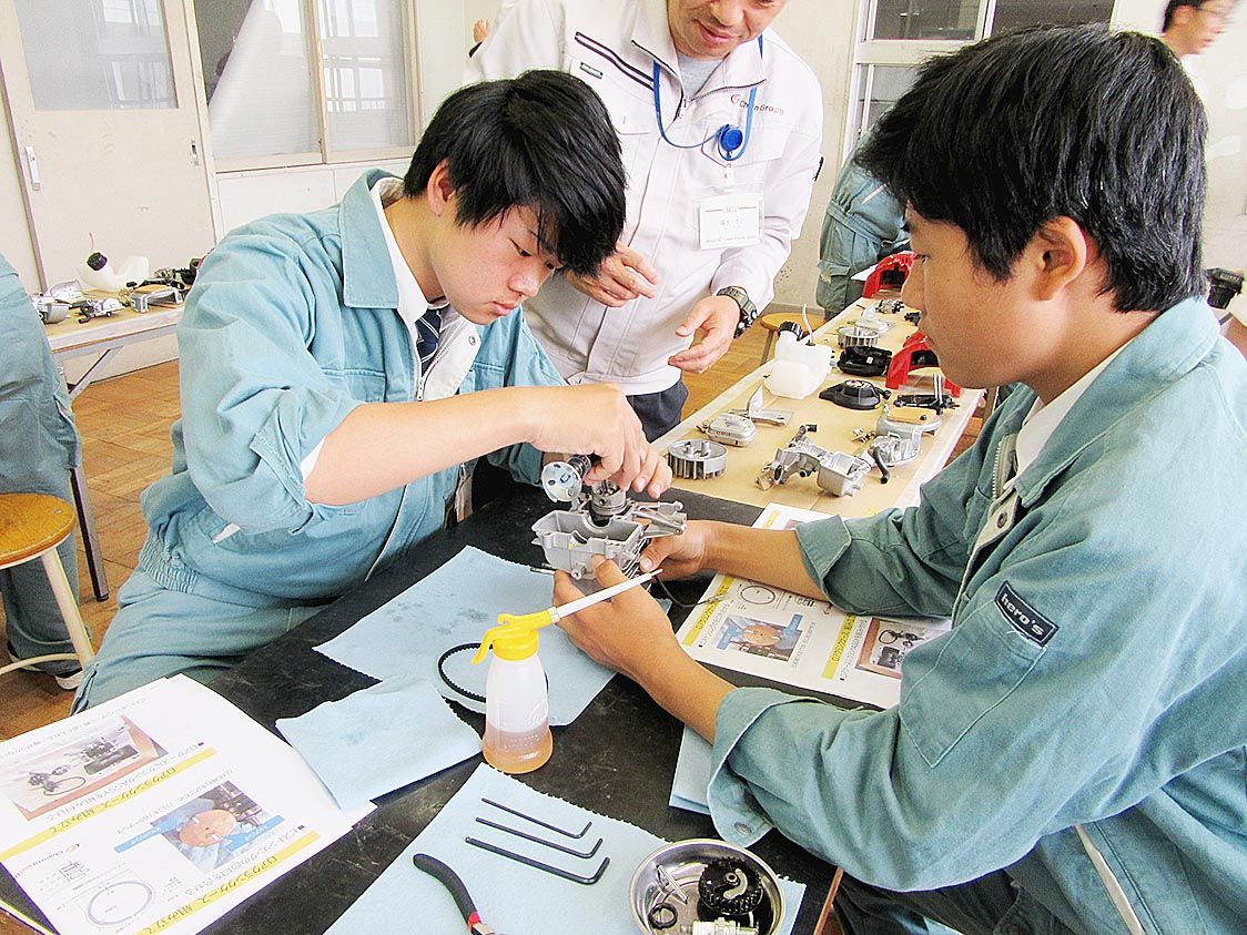 オートバックス子会社、エンジン組立を体験 大阪の高校で出張授業