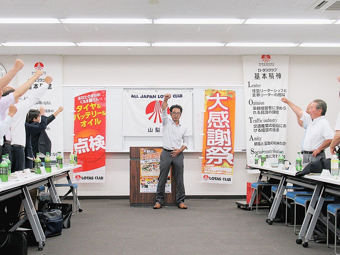 【甲府】全日本ロータス同友会山梨県支部(志村和良支部長)は、甲府東京海上日動ビルで「2019年度(10~11月)秋の総合キャンペーン決起大会」を開催した=写真。販売計画とともに種目別販売会議を通じて提携企業各社が実施要項を説明、優績賞目指...