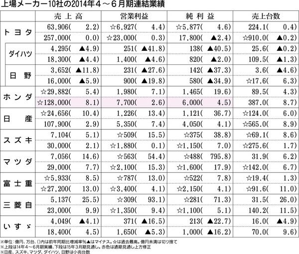■反動減 想定より軽微、乗用5社が営業最高益 上場している自動車メーカー10社の2014年4~6月期(1Q)連結決算が出そろった。タイでの不振が影響したものの、国内事業は懸念された消費増税後の落ち込みが想定より軽微だったほか、主要な海外市場...