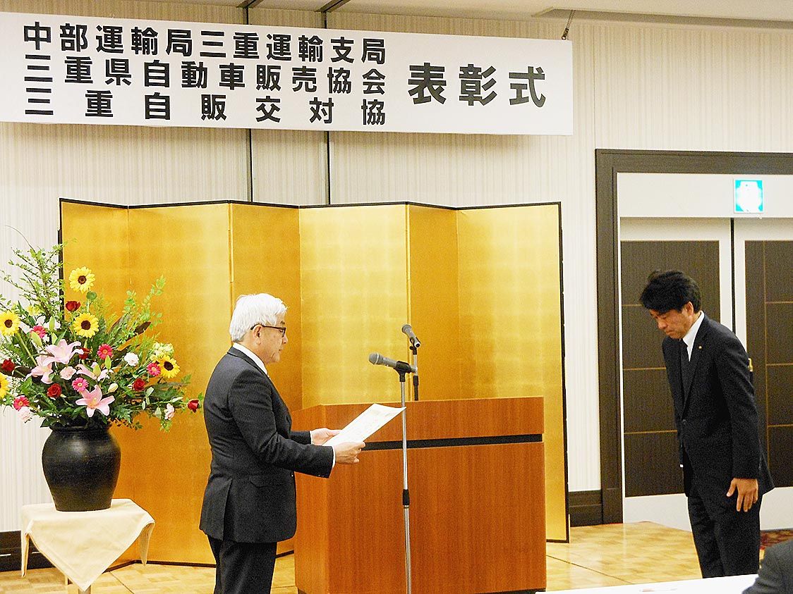 【津】三重運輸支局、三重県自動車販売協会(岩井純郎会長)、三重県自動車販売店交通安全対策推進協議会(三重自販交対協)はこのほど、津市内のホテルで優良事業者、功労者、永年勤続者らに対する表彰式を開催した=写真。三重運輸支局は、新車登録の平準...