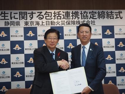 【静岡】静岡県は14日、東京海上日動火災保険と地域創生に関する包括連携協定を結んだ。包括連携協定では、地域の防災・減災活動と県民の安心・安全なくらし、地域産業の振興、中小企業の支援など10項目について県と東京海上日動が連携して取り組む。静...
