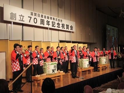 【大津】次の80周年に向けて新たな一歩を踏み出そう―。滋賀日産(大江伸夫社長)は12日、大津市内のホテルで「創立70周年記念祝賀会」を開いた。来賓のほか、来春入社予定の内定者も含めた440人が参加して節目を祝った。 大江社長はこの70年間...
