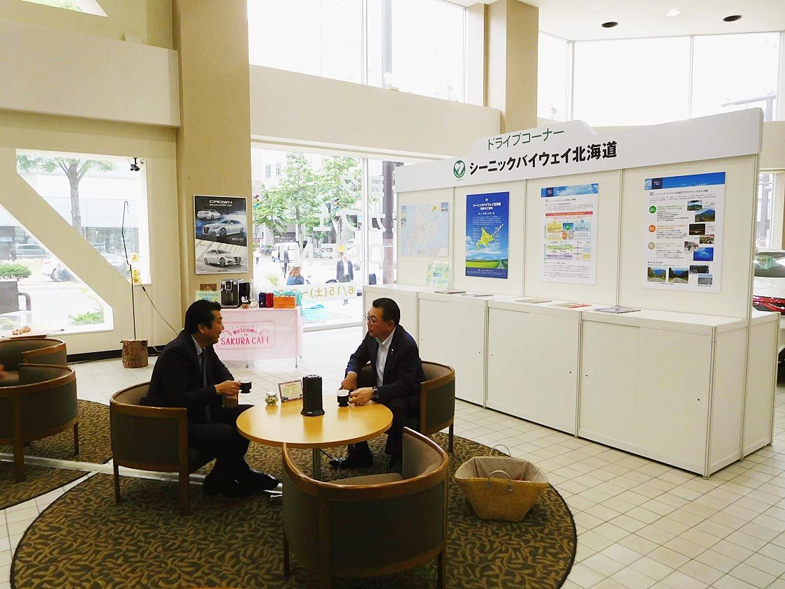 ○…クルマの電気で入れたコーヒーをどうぞ―。札幌トヨタ(中島好美社長)は今月末までの期間限定で、本社ショールームに「給電カフェ」をオープンした。 ○…昨年9月の北海道胆振東部地震による全域停電〝ブラックアウト〟以降、電動系車両の給電機能が...