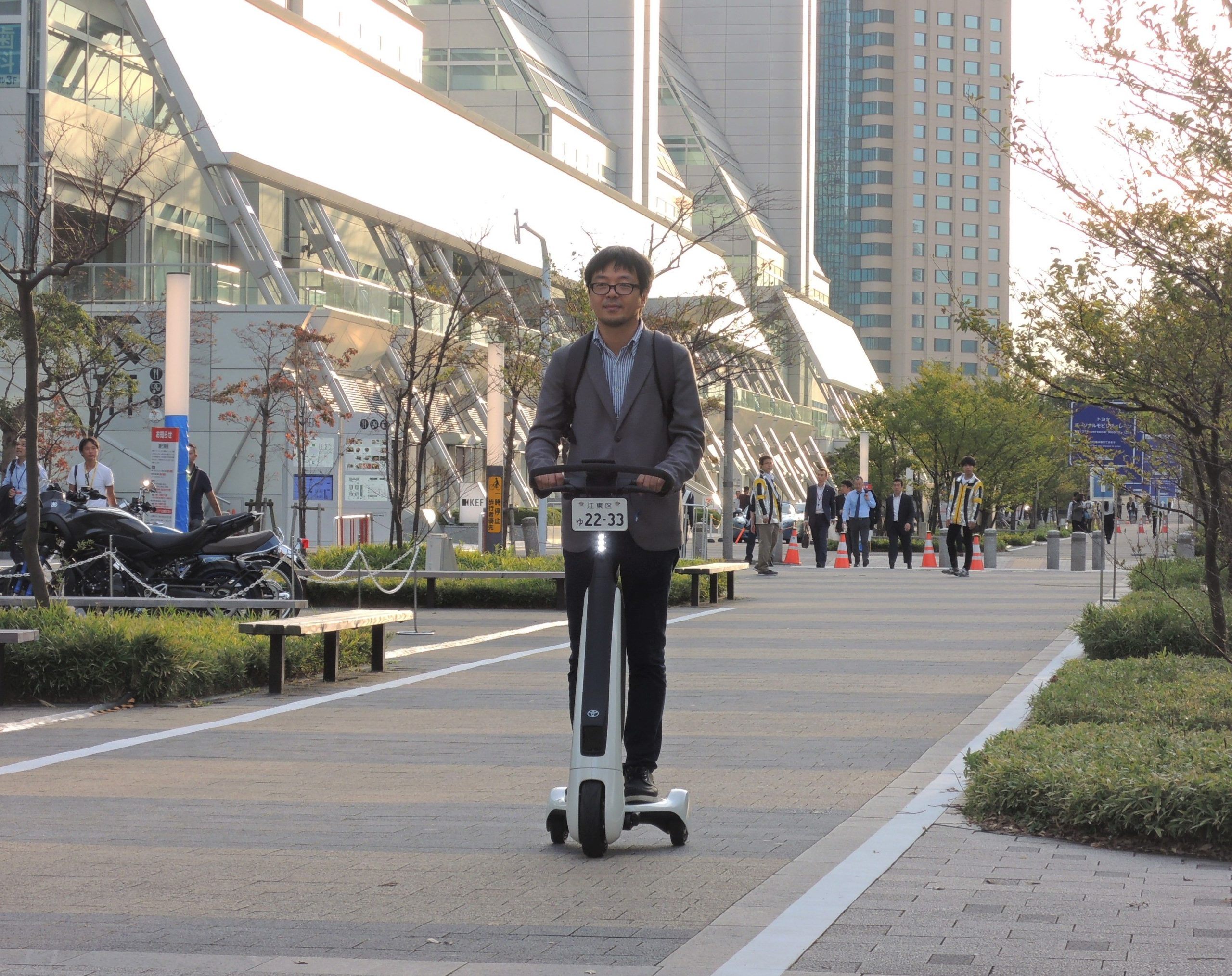 「東京モーターショー2019」は、会場が青海エリアと有明エリアに別れている。両エリアを結ぶ約1.5kmの「オープンロード」には、片道乗り捨て可能な電動キックボードや、小型モビリティが用意されており、試乗しながら反対側のエリアへ楽に移動できる。