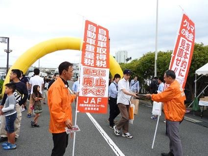 【奈良】日本自動車連盟(JAF)奈良支部(菊池攻支部長)はこのほど、近畿運輸局奈良運輸支局構内(大和郡山市)で開催された「第31回奈良モーターフェア」で「2017年度自動車税制改正に関する街頭活動」を実施した。同フェアの来場者にチラシを配...