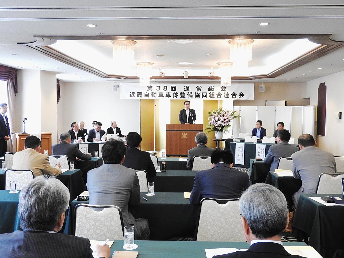 【神戸】近畿自動車車体整備協同組合連合会は21日、加古川市内のホテルで「第38回通常総会」を開いた=写真。任期満了に伴う役員改選で山元康史会長を再任した。副会長には川﨑光雄理事が昇格した。 2019年度の事業計画案など6議案を全会一致で承...