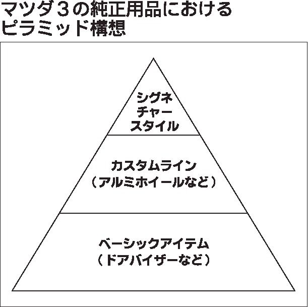 マツダは純正用品に新たなラインアップ構想を導入する。用品装着車を標準車の1グレードとして位置付けるなど階層的に用品を設定する「ピラミッド構想」=図=を新型「マツダ3」を皮切りに取り入れる。純正用品開発にも採用している一括企画と、商品ライン...