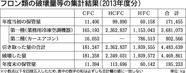昨年度のフロン破壊量、0.7%増4470トン カーエアコン1.2%減