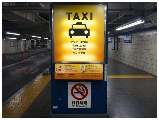 京成上野駅の公共タクシー乗り場は、改札口からの経路が分かりづらいとの声があった。今回、タクシー乗り場まで、イラストも使って表記した誘導サインを設置するとともに、外国人にもタクシー乗り場が分かりやすいように、誘導サインや車両呼び出しシステムを4カ国語(日本語・英語・簡体字・ハングル)で表記した。QRコードを使った車両呼び出しシステムを設置した。
