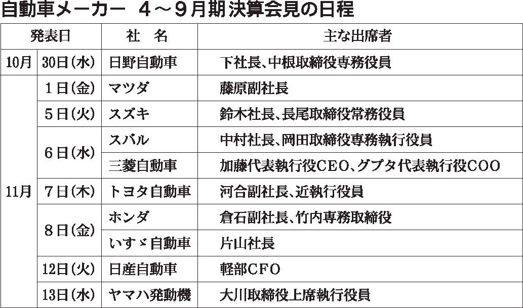 上場自動車メーカーの2019年4~9月期決算発表が30日から始まる。中国や米国の新車市場減速が続く中、第1四半期に大幅減益ながら挽回可能な範囲と判断して通期見通しを据え置いた日産自動車、三菱自動車、マツダの業績が注目される。...
