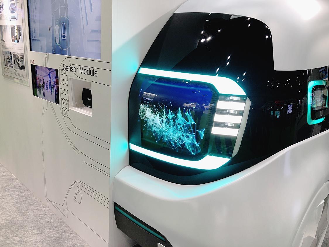 ユーザーや歩行者に必要な情報を光で伝える新システムを小糸製作所がTMSで公開。自動運転中であること、歩行者に道を譲ったり、自車が発信する合図を示す際のイルミに、このターコイズブルーを先取りしている。