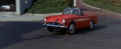 真っ赤な2ドアオープンカー「サンビーム アルパイン・シリーズIV」がタイヤを鳴らしながら下り坂を走り抜けていく。SFコメディー映画「ビキニマシン」のワンシーンだ。ゴールドフィット博士(ヴィンセント・プライス)に囚われていた富豪トッド(ドゥ...