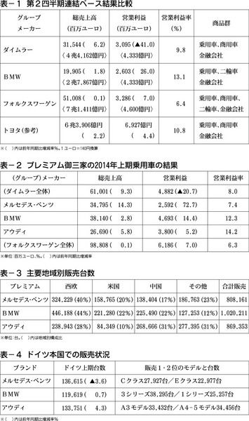 ドイツプレミアム御三家(ダイムラー、BMW、フォルクスワーゲン=VW)の上期決算が出そろった。5日発表になったトヨタの第1四半期と3社の第2四半期(4~6月)の結果をまず比較してみると、トヨタは北米で稼ぎ、かつ円安で過去最高の出だしになっ...