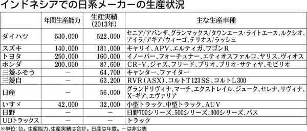 ◆タイに続き重要視 日本のメーカーにとってインドネシアは、ASEAN地域でタイに次ぐ生産拠点であり、市場も順調な伸びが期待されることから重要視している。2013年は通貨安が進行し、金利や消費者物価の上昇、補助金付き燃料の大幅値上げなど、景気...