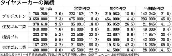 タイヤメーカー4社の2014年6月中間期の業績がまとまった。原材料価格の低位安定や為替水準、自動車業界の好調さを背景に4社とも売上高、利益で過去最高を記録。引き続き生産能力の増強も進めるなど、将来的な需要拡大を見込んだ設備投資を積極化して...