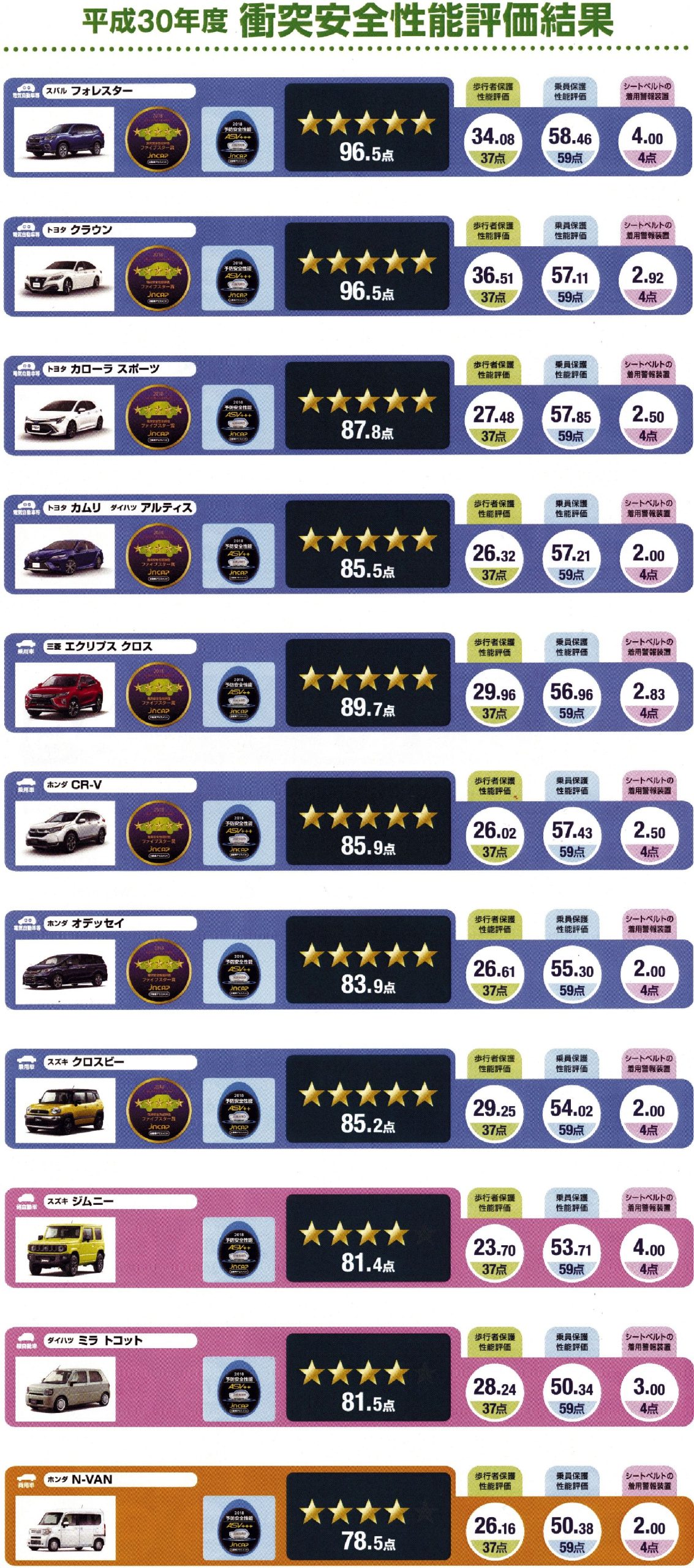 18年度自動車アセスメン衝突安全性能評価ト、モデルが最高評価の「ファイブスター」