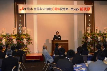 【熊本】熊本県中古自動車販売商工組合(JU熊本、永松守理事長)は19日、阿蘇郡西原村の常設AA会場で、「ネット接続3周年大記念オークション」を開催した。 全国ネットワークシステムを導入して3年が経ったことから、JUコーポレーションの関係者...