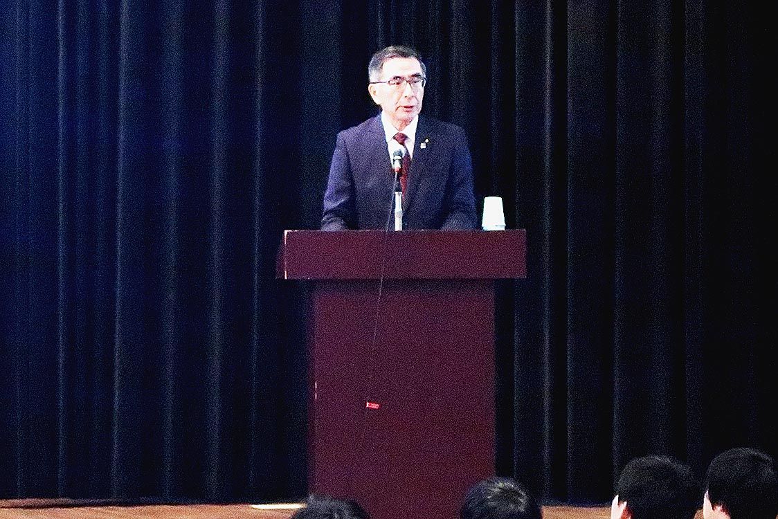 スズキの鈴木俊宏社長は31日、日本自動車工業会の「大学キャンパス出張授業2019」の一環として、「スズキのものづくり」をテーマに首都大学東京南大沢キャンパス(東京都八王子)で講演会を開いた=写真。車づくりのスローガンである「小少軽短美」の...