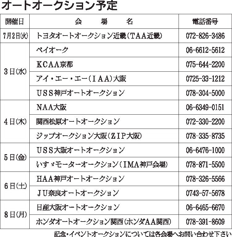〈オートオークション結果〉 近畿地区 2026/1/12~17