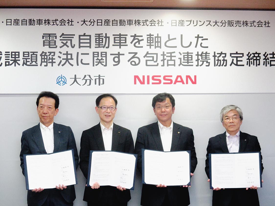 日産自動車と大分日産(橋本仁社長)、日産プリンス大分(岩島達郎社長)は大分市と「電気自動車(EV)を軸とした地域課題解決に関する包括連携協定」を25日に締結した。日産はこれまで全国で10の自治体と連携協定を結んでいるが、社会課題の解決に取...