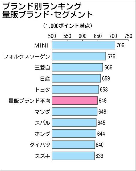 J・D・パワー・アジア・パシフィックが19日発表した「日本自動車セールス満足度」調査によると、量販ブランドの総合満足度ランキングでは「MINI」が昨年に続いてトップとなった。ラグジュアリーブランドでは「レクサス」が8年連続でトップとなった...