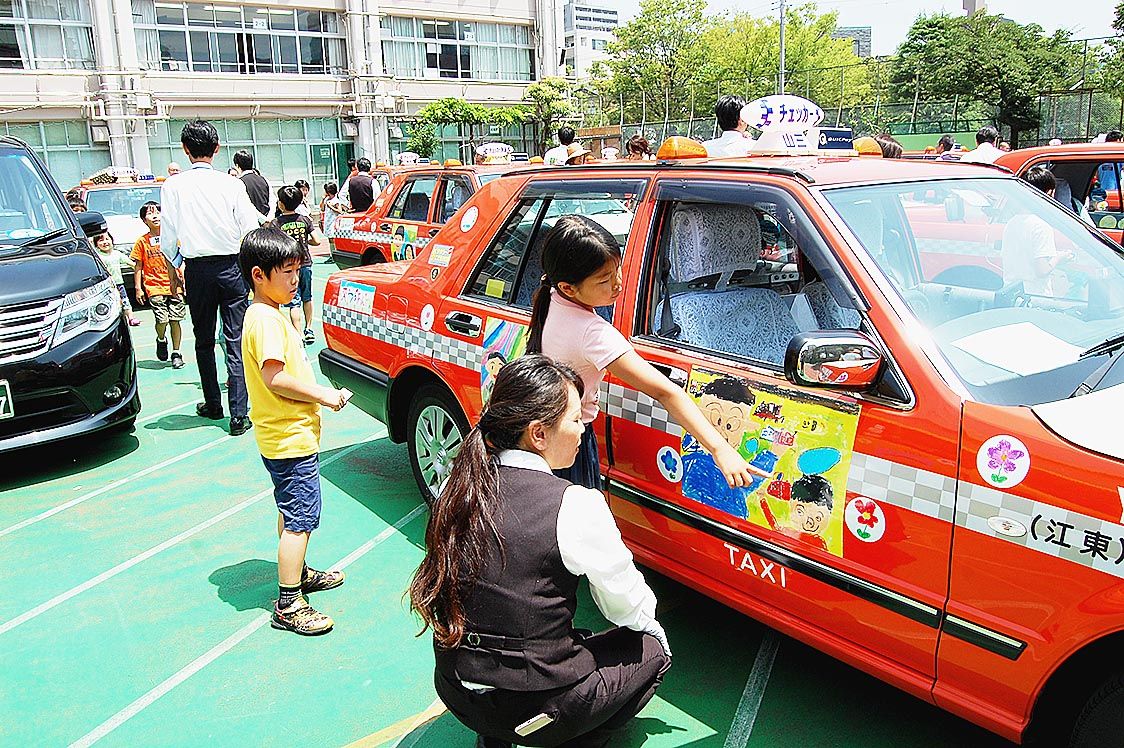 チェッカーキャブ無線協同組合(秋山利裕理事長、東京都中央区)は6月26日、小学生が「交通安全」をテーマに描いた絵を車体にラッピングした「くれよんタクシー」の出発式を東京都墨田区立業平小学校で開き、同組合関係者と絵を描いた3年生や父母、教諭...