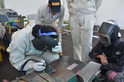 自技会、試走会で学生向けにプロが教えるアーク溶接講習会