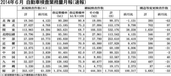 国土交通省は、6月の自動車検査業務量(速報)をまとめた。それによると、新規検査件数は前年同月比8598件減(2・4%減)の35万3127件、継続検査件数は2万4275件増(1・4%増)の171万8823件。構造等変更検査件数は199件増(...