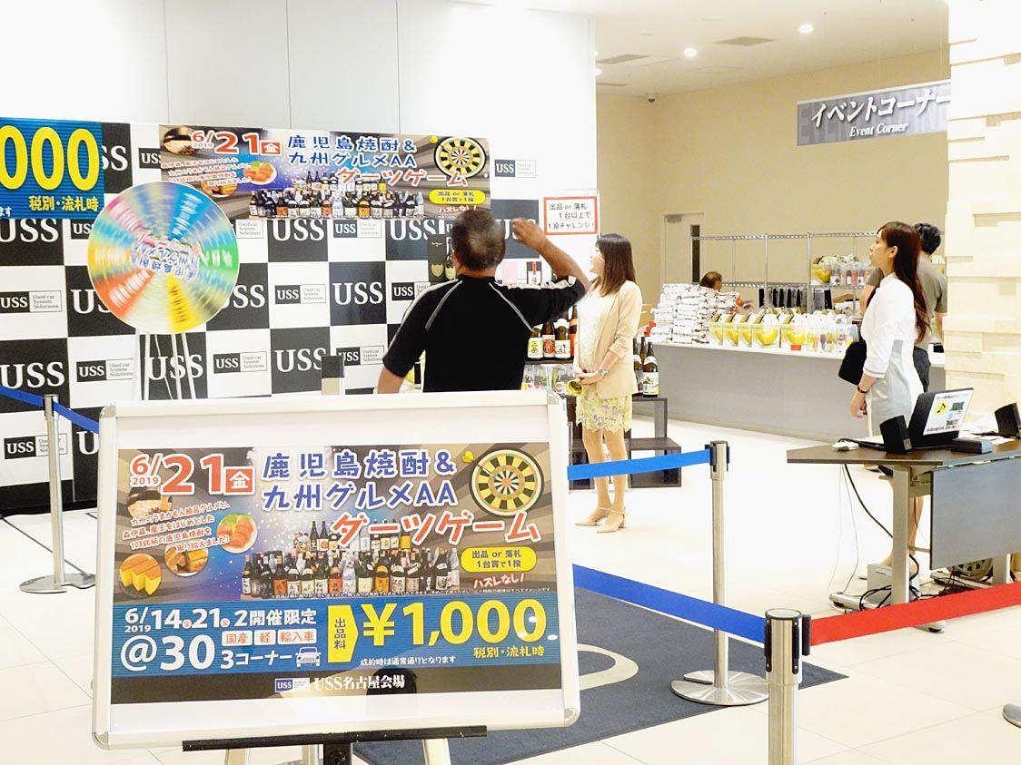 ユー・エス・エス(USS)名古屋会場(方山直義会場長)は6月21日、第1797回中古車オークション(AA)「鹿児島焼酎&九州グルメAA」を開催した=写真。当日は、出品または落札1台賞で1投のダーツゲームを実施し、会場を盛り上げた。また、競...