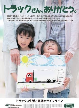 「トラックさん、ありがとう。」―。小学生の女の子と幼い弟が真っ白い画用紙にクレヨンでバントラックを描いたほのぼのとしたポスターが、10月9日の「トラックの日」を記念したグランプリ作品として選ばれた。全日本トラック協会では9月からの1年間...
