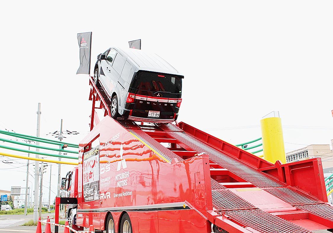 北海道三菱(君島英紀社長)は先月29、30日の2日間「4WD登坂キット体感試乗会」を発寒店で開いた=写真。最大傾斜角45度の登坂を登り、力強い走りを披露した。参加者数は2日間合計で414人に上った。 三菱自動車が大型の登坂キット搭載車を使...