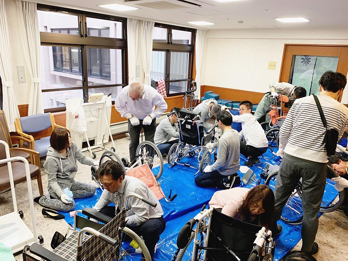 AIRオートクラブ札幌支部(石上剛支部長)はこのほど、社会貢献活動の一環として札幌市清田区の特別養護老人ホーム「ひらおか梅花実」で車いすの清掃・点検を実施した=写真。 会員企業のスタッフと損保ジャパン日本興亜の社員ら34人が参加した。はじ...