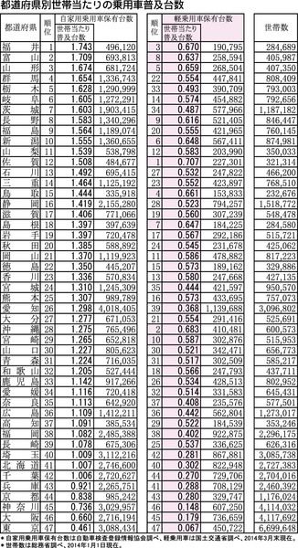 2014年3月末時点の乗用車普及状況を地域別にみると、世帯当たりの普及が高い地域で必ずしも軽乗用車の普及率も高いとはいえないことが分かった。全般的には複数保有の場合に軽乗用車が選択されるとみられるが、世帯当たり普及台数のランキングをみると...